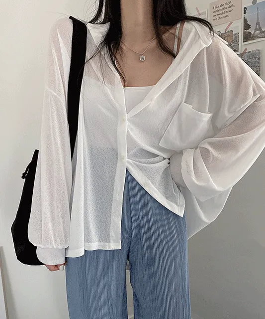 [간절기필수/누적5만장돌파!] 시스루 비치 루즈핏 간절기 여름 롱 카라 셔츠