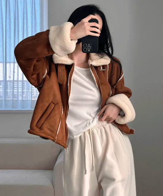[부해보임X/왕따숩!] 스웨이드 절개 양털 크롭 무스탕 - jp