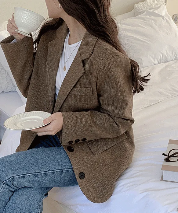 토비 헤링본 싱글버튼 자켓 P000BJUW