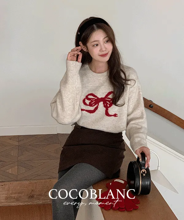 [♥겨울니트][3천장돌파] 오너먼트 리본포인트 니트 연말룩/리본니트/라운드니트/데이트룩/시보리니트