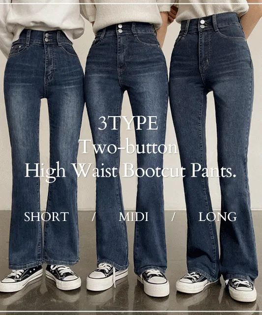 [기장선택/2XL까지!/레전드핏] 리미 투버튼 하이웨스트 스판 부츠컷 데님팬츠 [청바지/와이드핏/생지청바지/통바지]