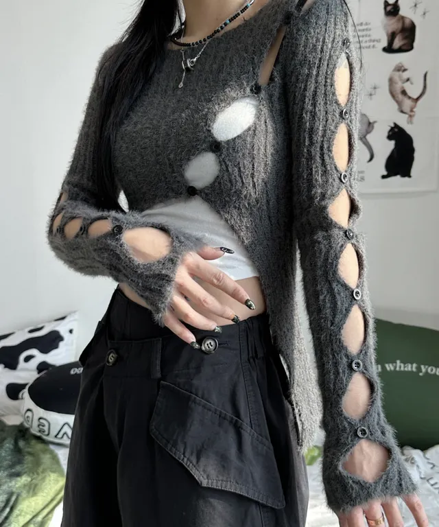 [재진행]트임 버튼 퍼 언발 크롭 니트(3-5일 여유주문)