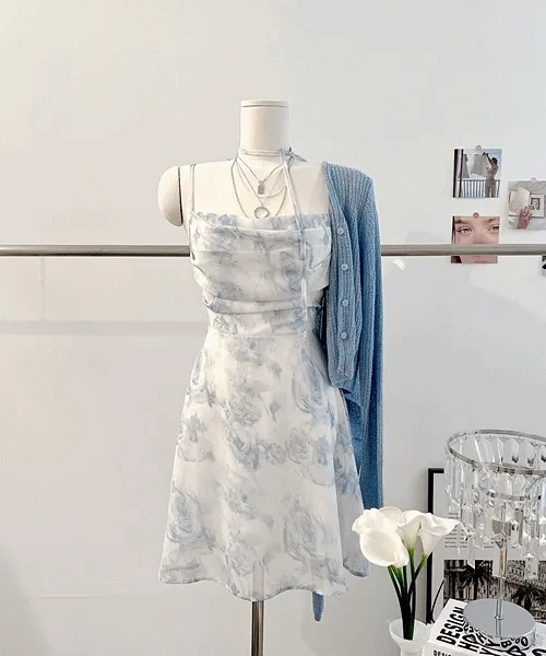 💙당일발송💙*미니/롱ver* [페미닌!/하객룩!] 페일 쉬폰원피스 뒷트임 타이다이 플라워 나염 리본 스트랩 A라인 플레어 슬립 뷔스티에 나시원피스 미니원피스 롱원피스 겨울원피스