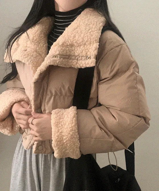 [겨울템/색감예뻐요!] 크림슈가 리버시블 양털 크롭 패딩 점퍼 - 3color