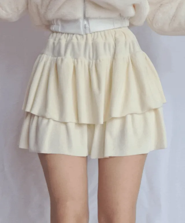 [속바지안감] 밀크 벨벳 캉캉 스커트 벨로아 겨울 치마 레이스 프릴 미니스커트 밍크