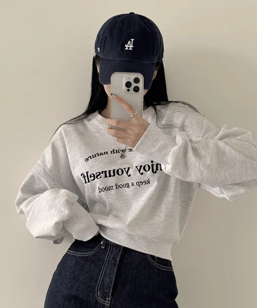 [꾸안꾸/아방핏] 귀여움 듬뿍, 데일리 자수 레터링 크롭 맨투맨 (3color)